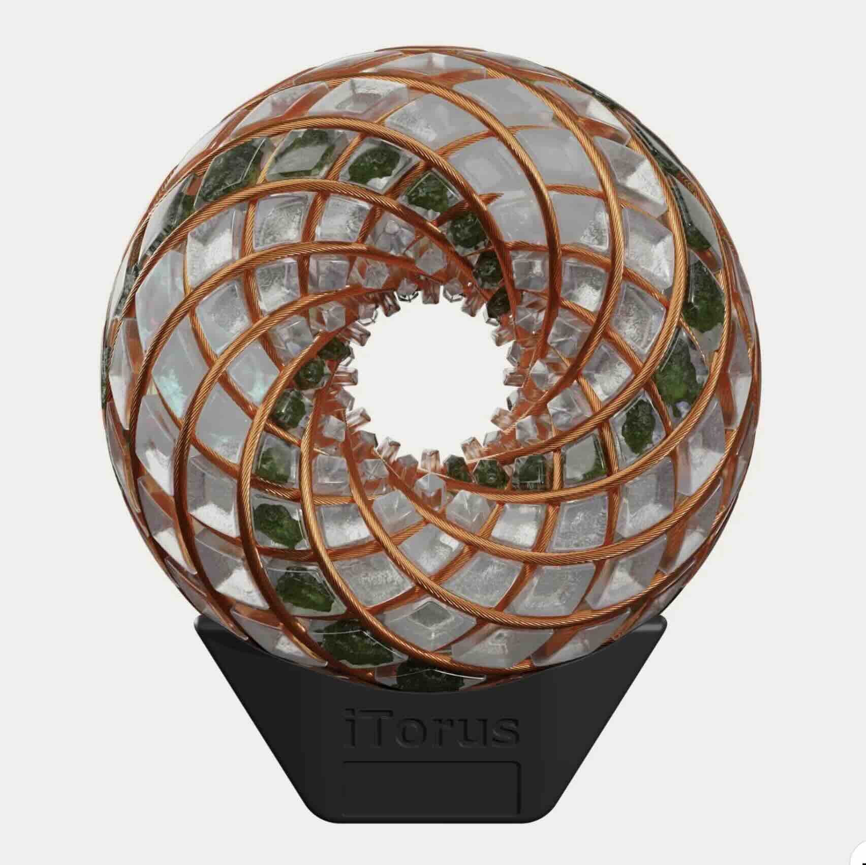 - Every iTorus is hand-inlaid with positive and negative circuit of hand-spiralled, 24-strand copper wire that is energized by phone or amplifier connection to create a unique, active wave field beneficial for many applications.